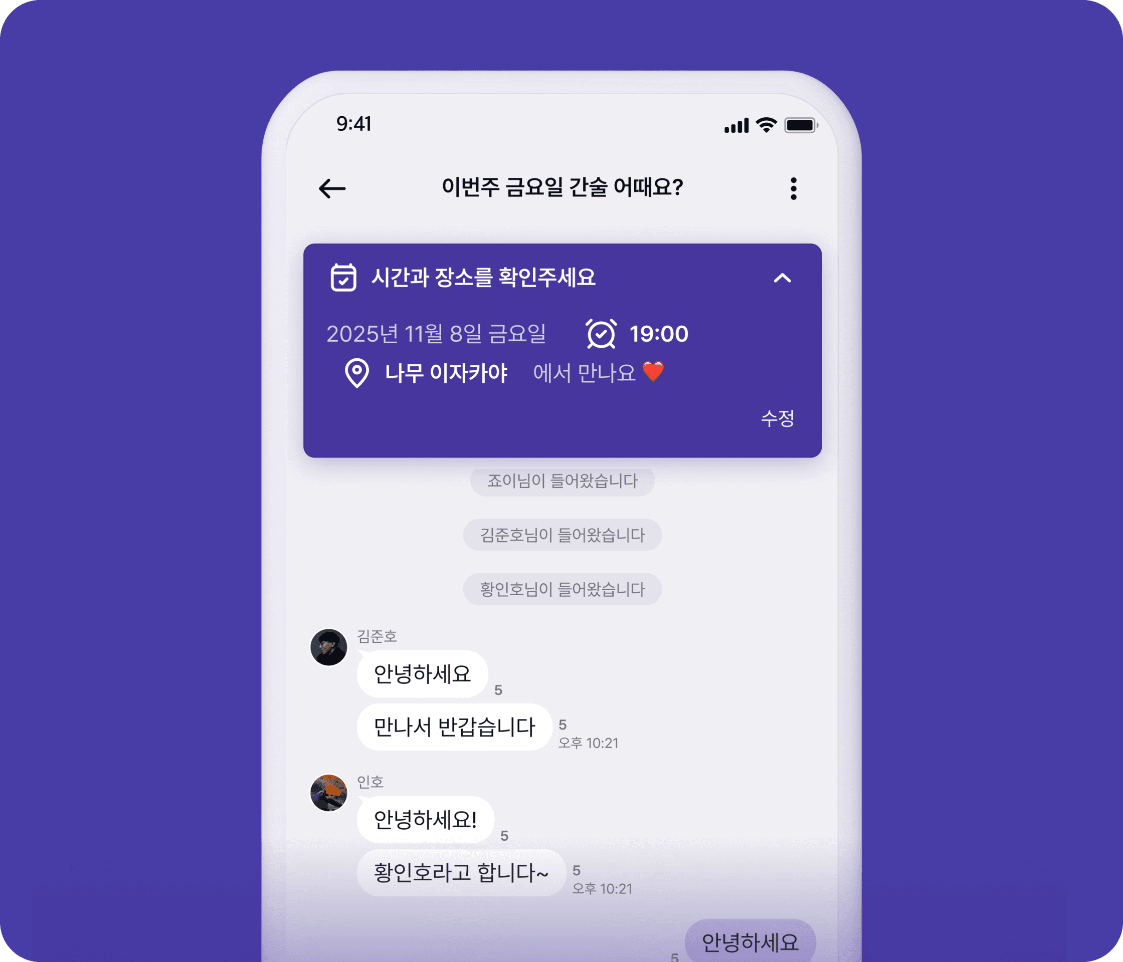 모두가 모이면 채팅방이 열려요